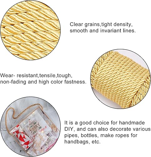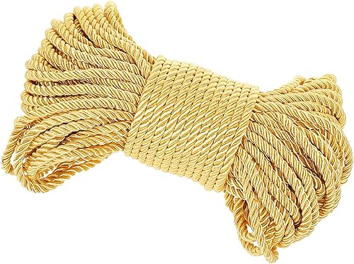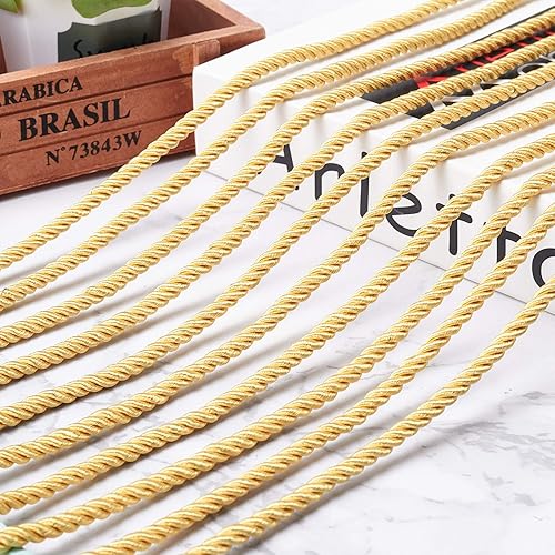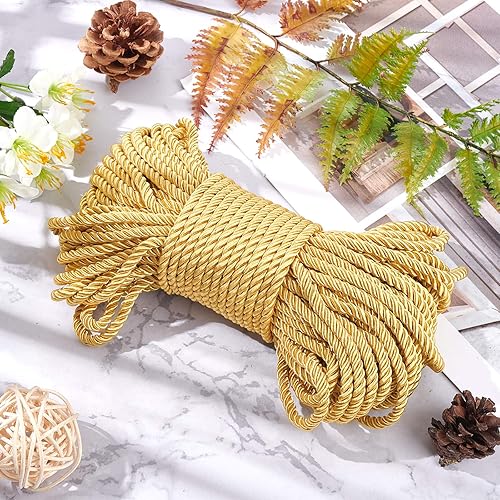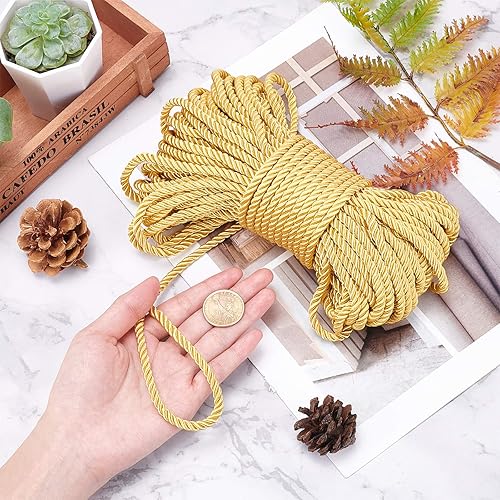PH PandaHall 25m Cordon à Bordure Torsadée Dorée, 6mm Corde Décorative pour Embrasse de Rideau, Rembourrage, Cordon d'honneur, Décor à la Maison, Poignées de Corde
