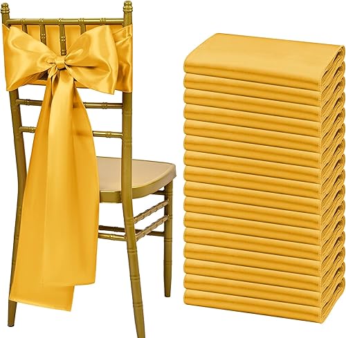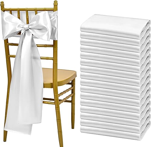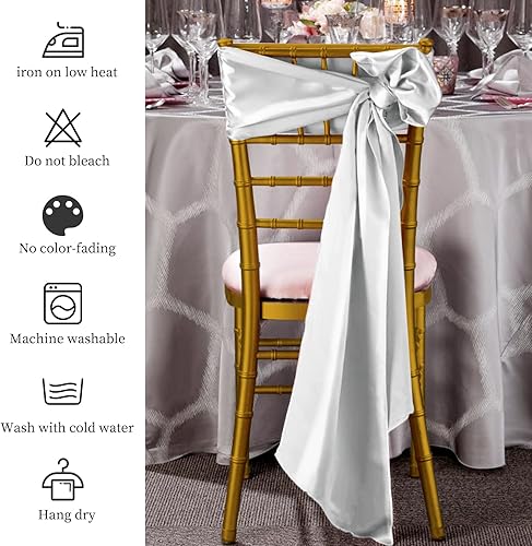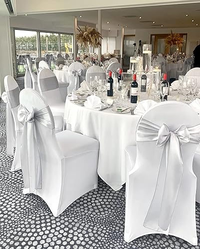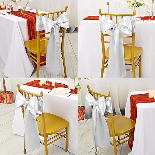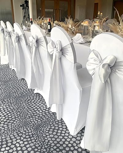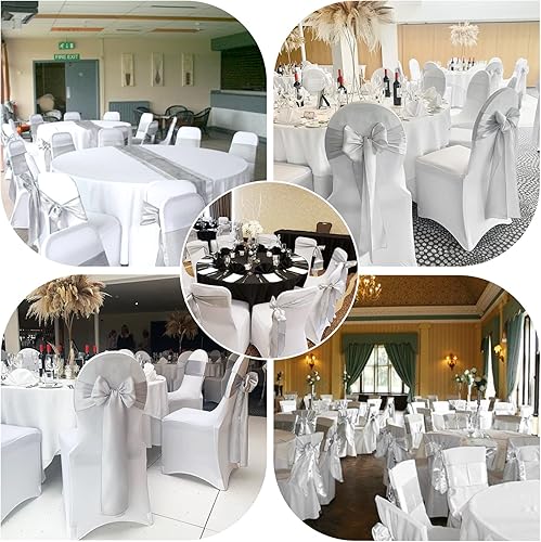 Showgeous Lot de 60 nœuds de Chaise en Satin argenté pour décoration de Chaise pour réception de Mariage, Rubans de Chaise pour Banquet, fête, fête prénatale, événement (argenté, 18 x 275 cm)