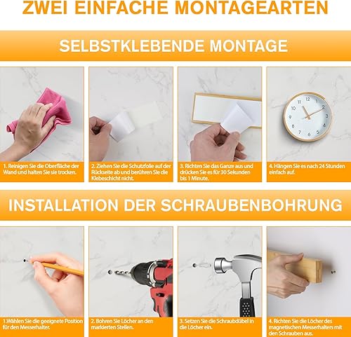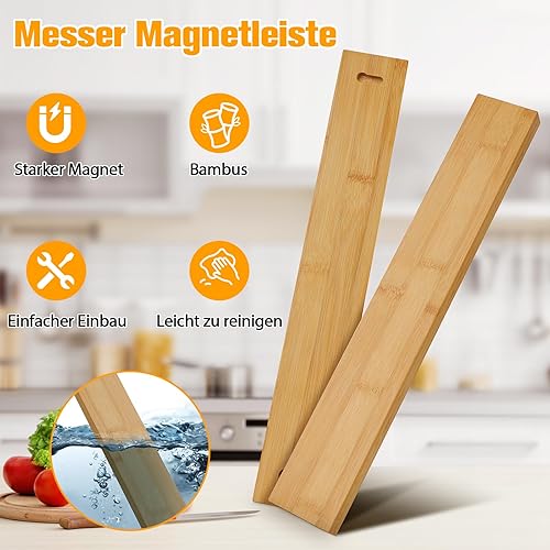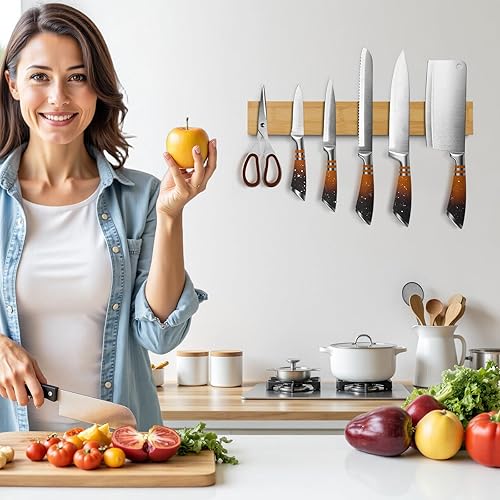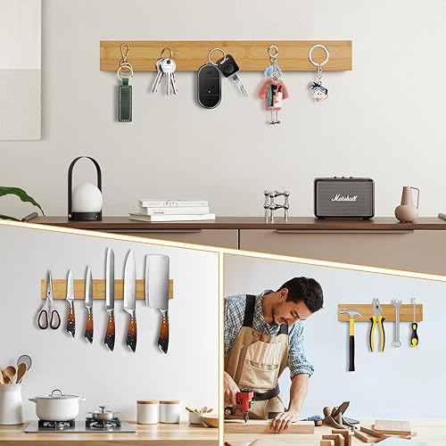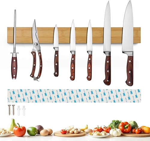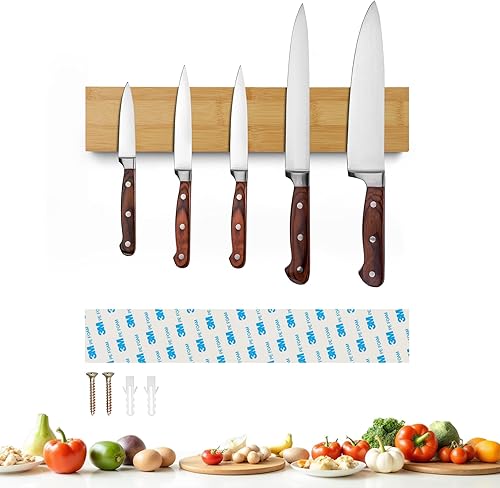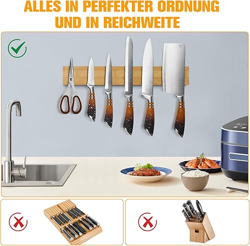 Sampoes Porte Couteaux Aimanté, Porte Couteau en Bambou, Barre Aimantée pour Couteaux, Aimant Couteau Cuisine Sans Perçage, Barre Magnétique pour Couteaux et Ustensiles