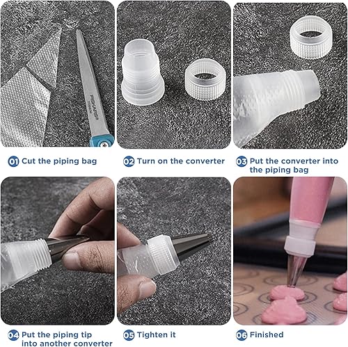 Bigqin 13,7 Pouces 100 Pièces Grandes Poches à Douille Jetables Et Douilles Ensemble de 6 Pièces avec Convertisseur, Anti-Éclatement Antidérapant Poches à Douilles pour Biscuits de Décoration