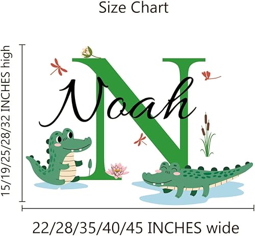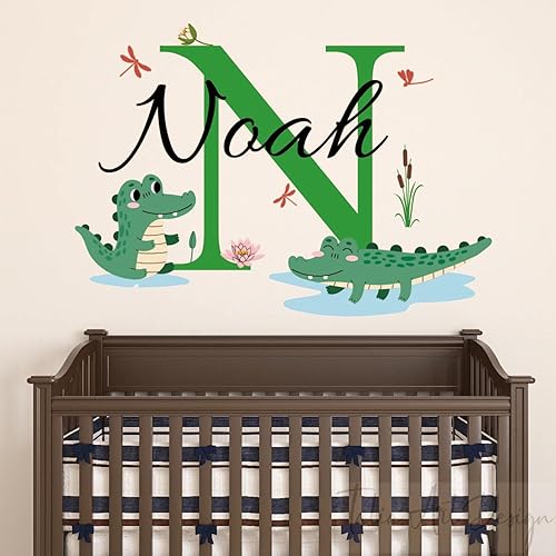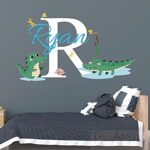 Autocollant mural personnalisé en forme de crocodile avec initiale alligator pour chambre de garçon et chambre d'enfant.