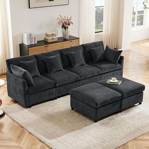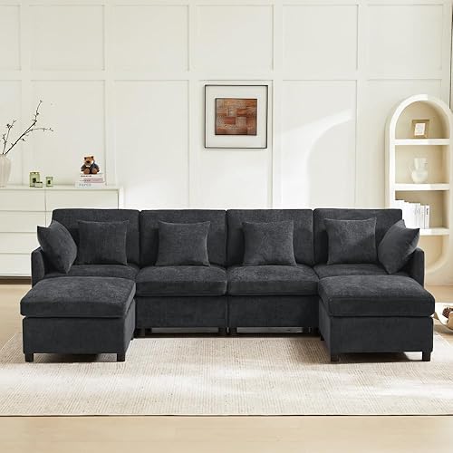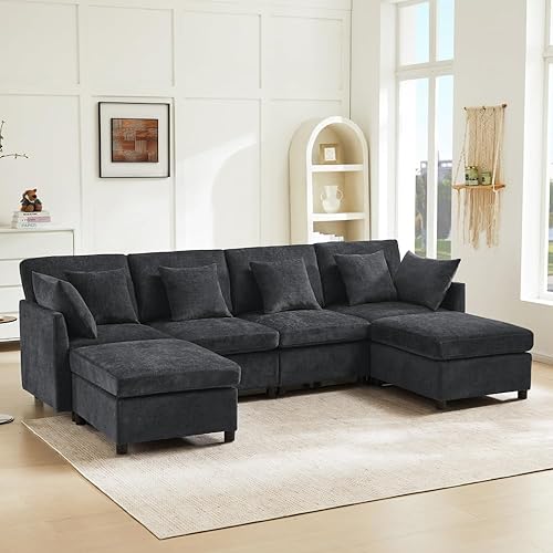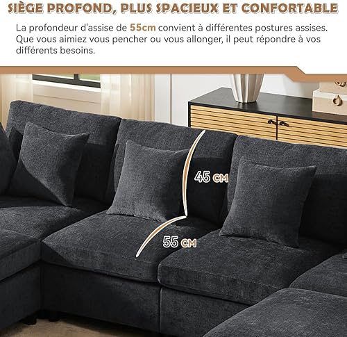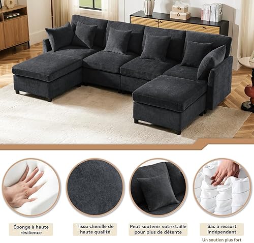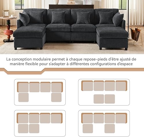 Canapé Design Moderne, canapé d'angle en L avec Repose-Pieds, Tissu Chenille, canapé Trois/Quatre Places, adapté au Salon d'un Appartement (Gris,216×161×81cm)