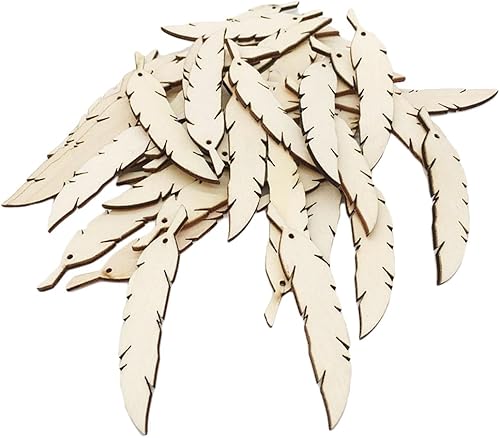 MagiDeal 50pcs Plumes en Bois Non Fini Embellissements Naturel Rustique pour Mariage Décoration Artisanatlage