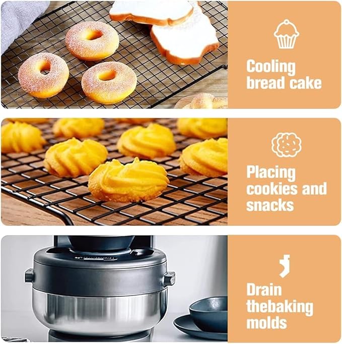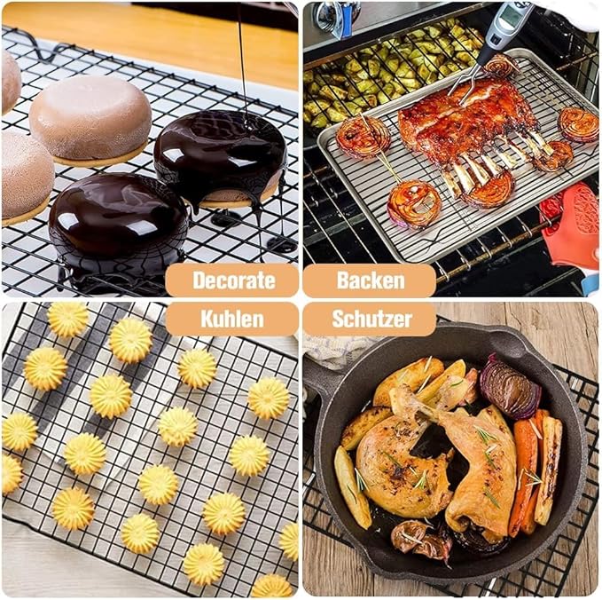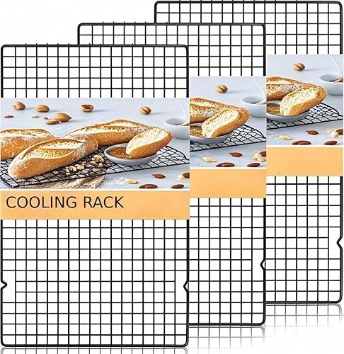 CANCYCC Lot de 3 grilles de refroidissement rectangulaires - En acier inoxydable - 40,5 cm x 25,5 cm - Noires - Robuste - Pour pâtisserie, barbecue, saine et robuste - Inoxydable - Passe au