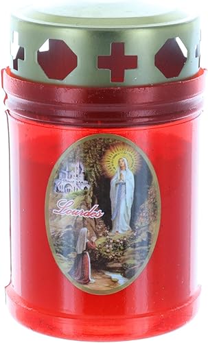Bougie Votive d'extérieur Apparition de Lourdes 10 cm rouge - Bougie Votive - Culte Chrétien en Cire végétale