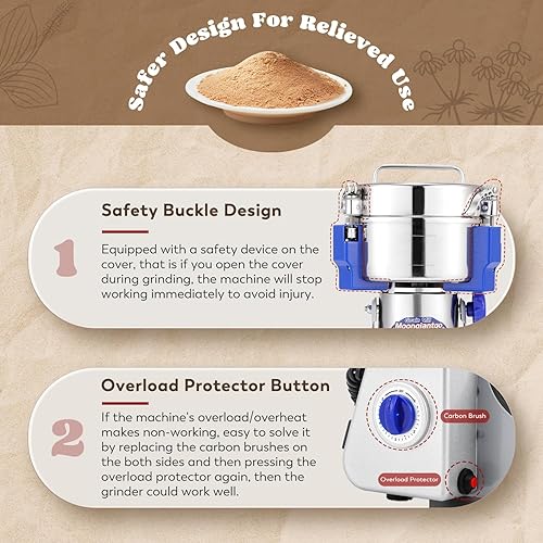 Moongiantgo Moulin à Céréales Électrique 1500g Moulin à Graines en Acier Inox Moulin à Epices de Moteur3000W 36000RPM Maille 50-300 avec Protection Surcharge& Arrêt Automatique pour Grain/Épice/Herbe
