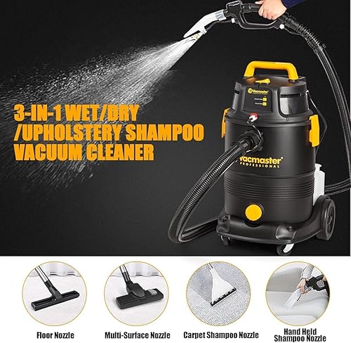 Vacmaster VK1323PFR Aspirateur Eau et Poussière,3-en-1 Nettoyeur Multi-surfaces pour Tapis Moquettes Tissus d'ameublement Escaliers et Voiture,Nettoyeurs tapis et moquettes 1300W 23L