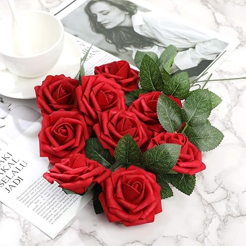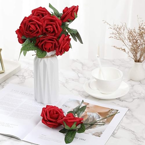 60 pcs Roses Artificielles Fleurs Réelles À La Recherche De Faux Roses Mousse Artificielle Roses Décoration DIY pour Bouquets De Mariage Centres De Table, Arrangements Décorations De Fête (Rouge)
