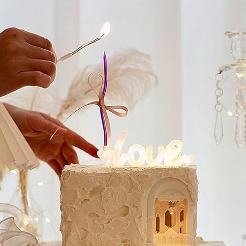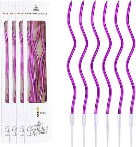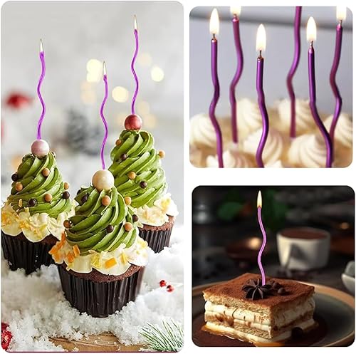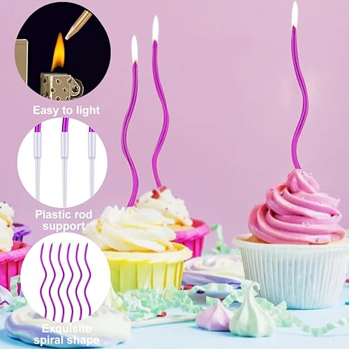 Lot de 24 bougies d'anniversaire torsadées, bougies spirales pour gâteau, bougies fines pour gâteau, centres de table pour décoration de gâteau (Violet)