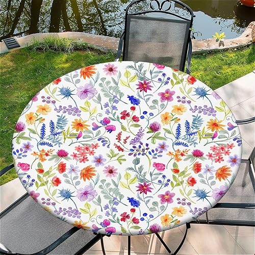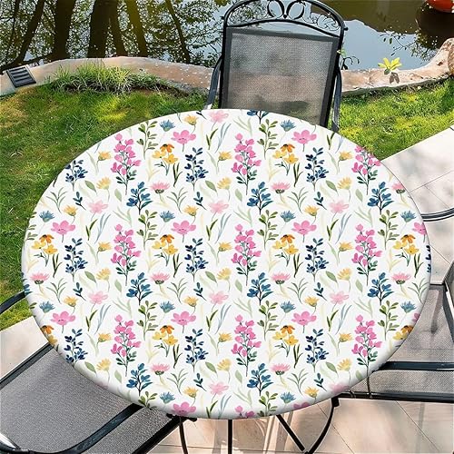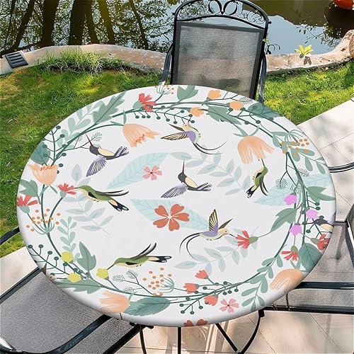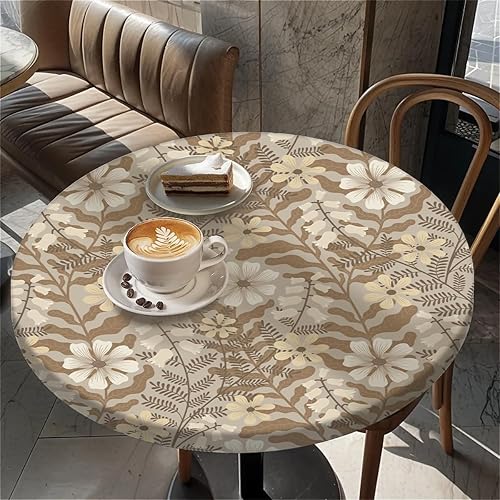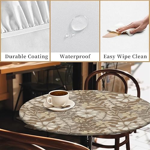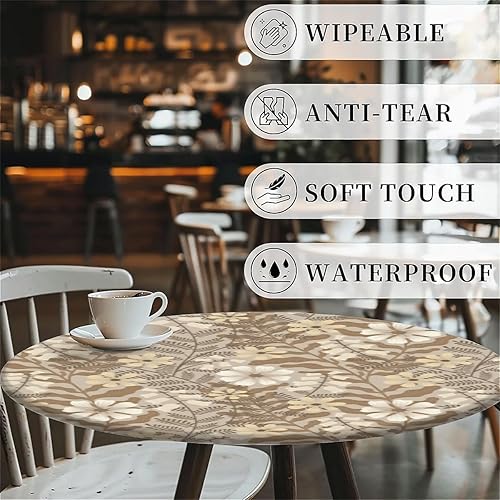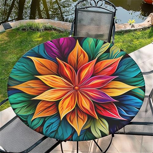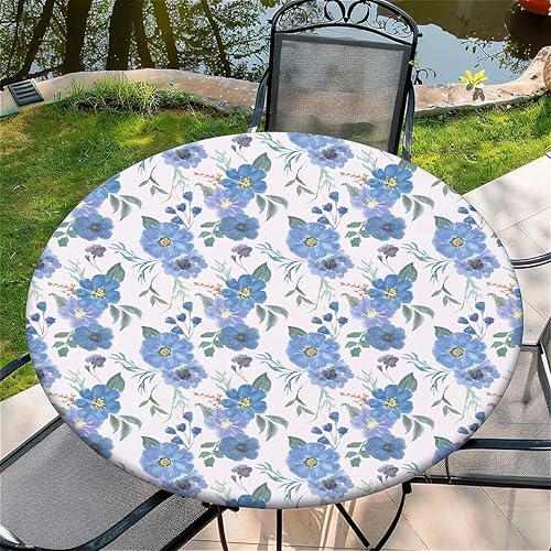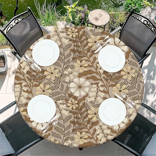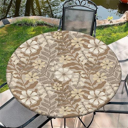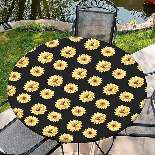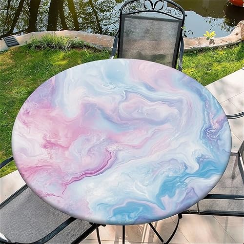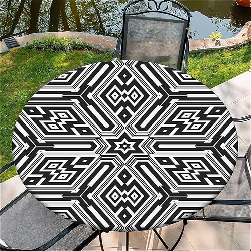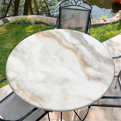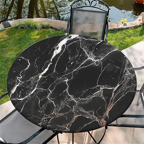 Nappe Ronde d'extérieur avec élastique 44in(110cm)- Nappe de Jardin élastique Motif marbre Noir