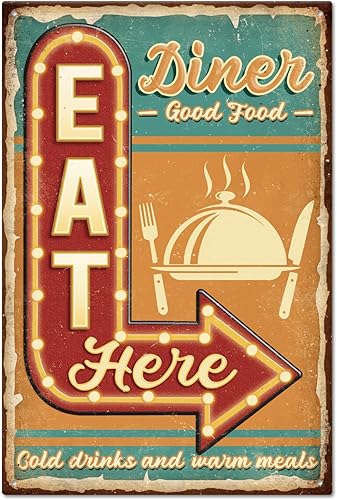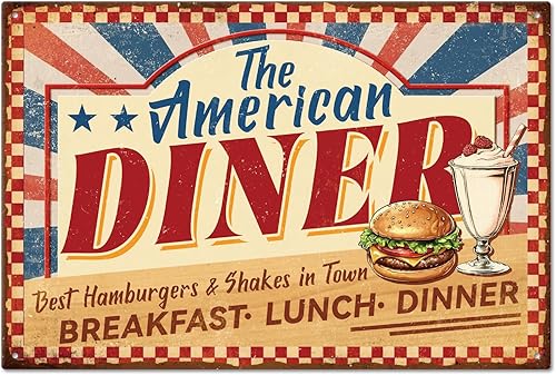 GLOBLELAND Plaque en Métal Style Diner Américain de 8x12 pouce Vintage Hamburgers et Milkshakes Plaque D'Art Décorative pour Mur de Maison Cuisine Salon Chambre Café Bar.