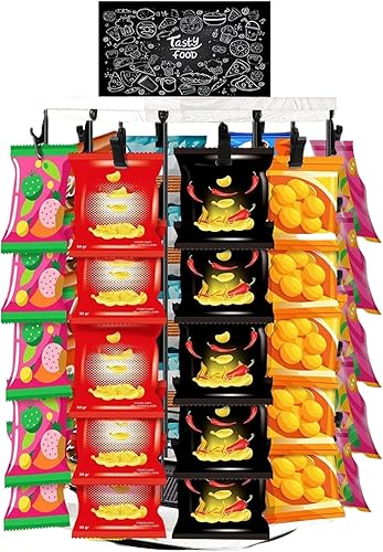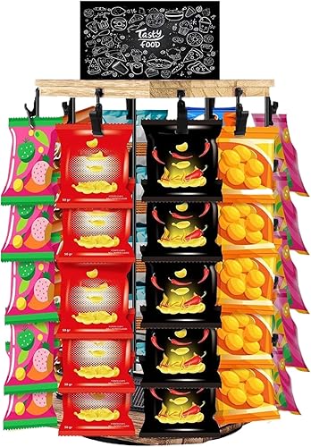 Présentoir à Chips | Organisateur de Snacks avec Porte-Chips - Support Tournant 5 Niveaux 40 Crochets Stockage Aliments pour Maison & Magasin