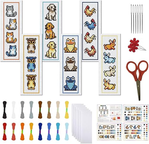 FREEBLOSS 6PCS Point de Croix Signet Point de Croix Kit Point de Croix Thèmes Animalier Point de Croix Kits de Broderie au Point de Croix Kit de Signets au Point de Croix Compté pour Débutants
