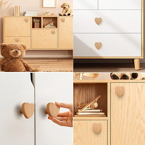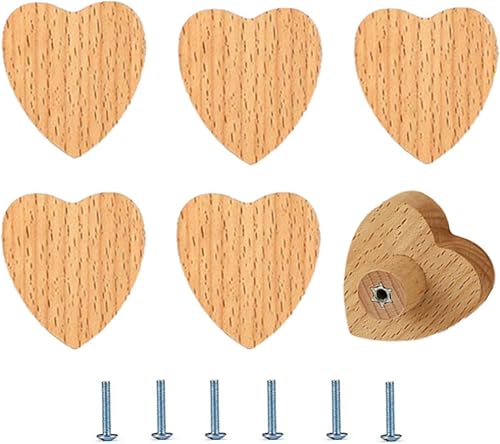Loopunk Poignées pour meubles de cuisine, boutons de meubles pour enfants, cœur en bois massif de qualité supérieure, avec texture naturelle, pour armoires et tiroirs, 6 pièces