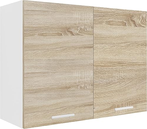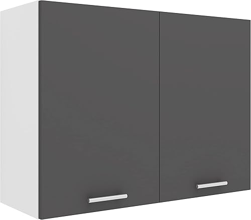 VCM Armoire Suspendue 2 Portes, Bois d'ingénierie, Blanc/Anthracite, Taille Unique