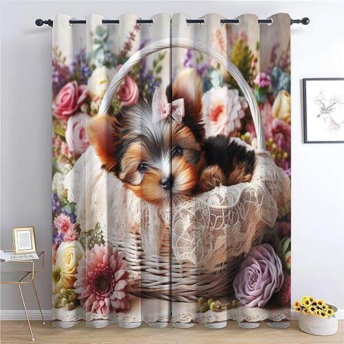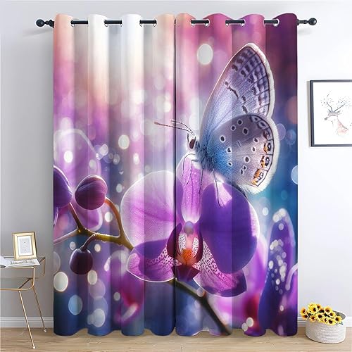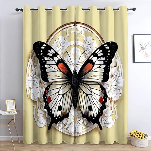 Lot de 2 Rideau Occultant Papillon Jaune L110 x H215 cm Rideau Thermique Isolant Anti Froid, Rideau Occultant avec Œillets - Rideau Fenetre pour Chambre Salon et Chambre Enfant