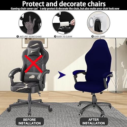 WYLEBER Housses de Chaise de Gaming,Housse de Fauteuil Rotatif avec Accoudoirs/Dossier de Chaise,Antidérapante Rétractable Protection de Siège Gaming(Dark Gray)