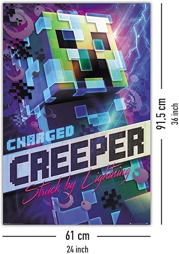 Close Up Poster Minecraft - Charged Creeper (61cm x 91,5cm) + Un Poster Surprise en Cadeau!