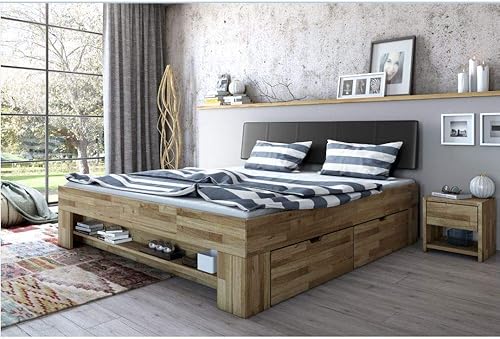 roominado Sabrina Lit futon en chêne avec tête de lit capitonnée 180 x 200 cm et étagère pour pieds