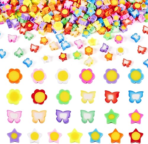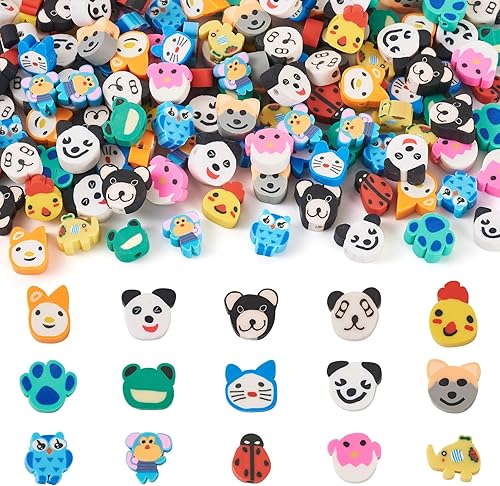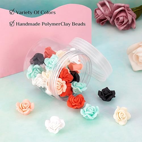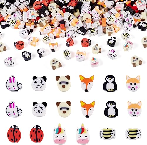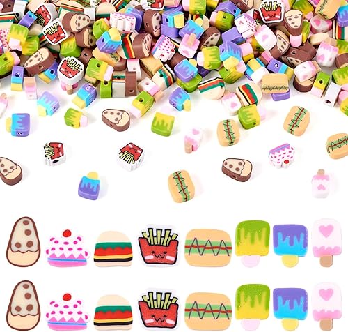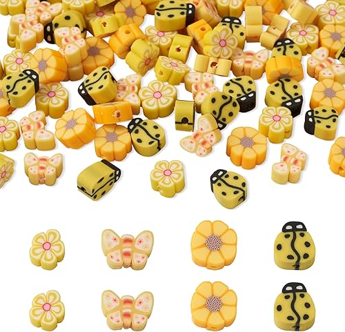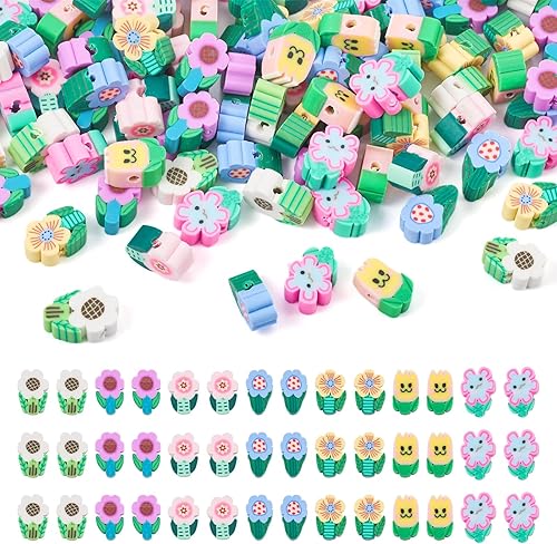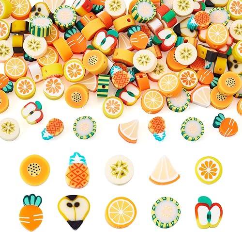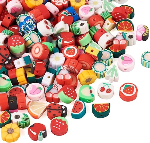 Boutigem Lot de 200 perles en argile polymère faites à la main - Jolies fleurs et fruits - Perles en vrac pour fabrication de bijoux