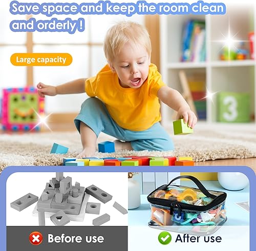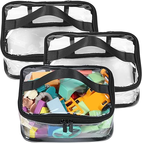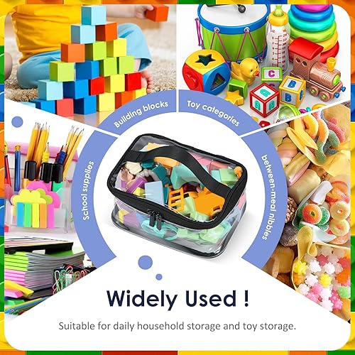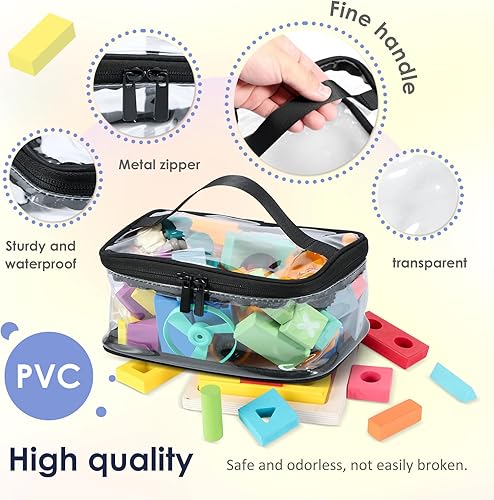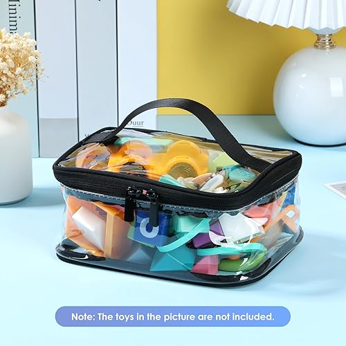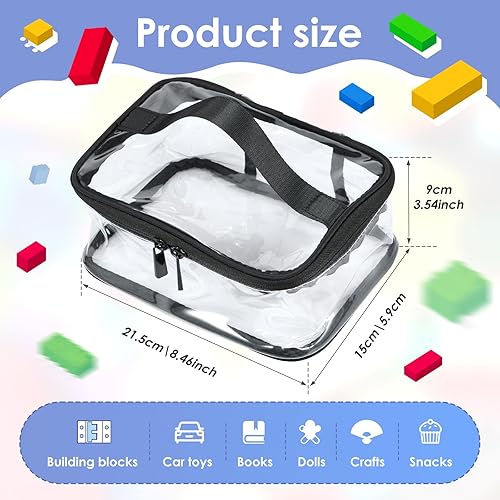 Lot de 3 sacs de rangement de jouets en PVC transparent avec fermeture éclair et poignée – Sacs de rangement réutilisables pour jeux de société, 21,6 x 15,2 x 8,9 cm, imperméables pour blocs de