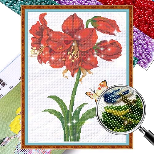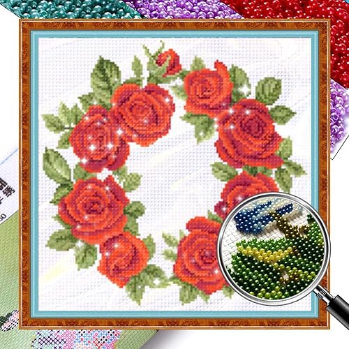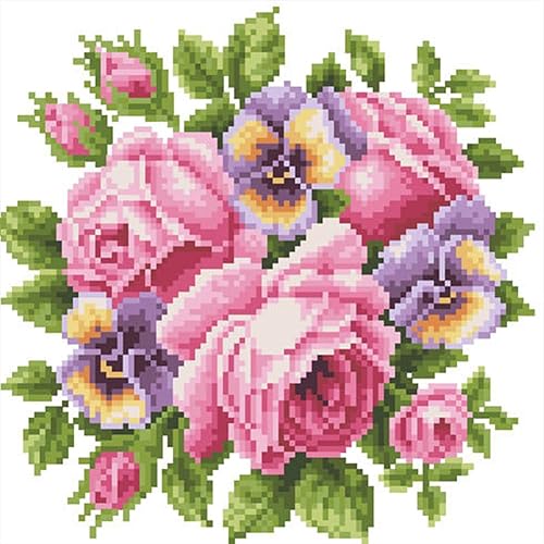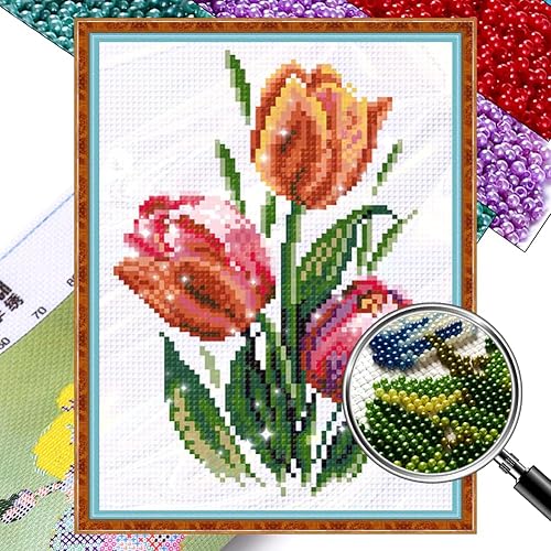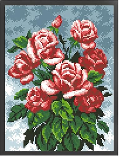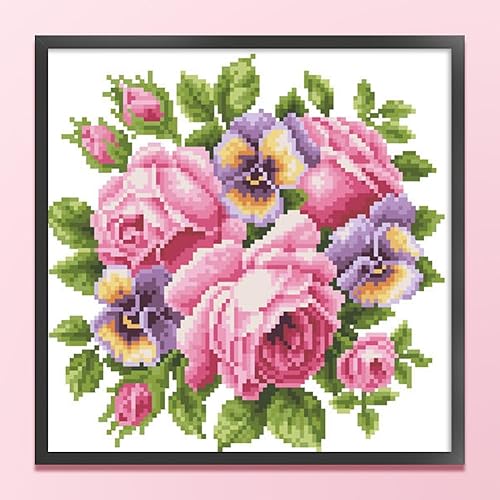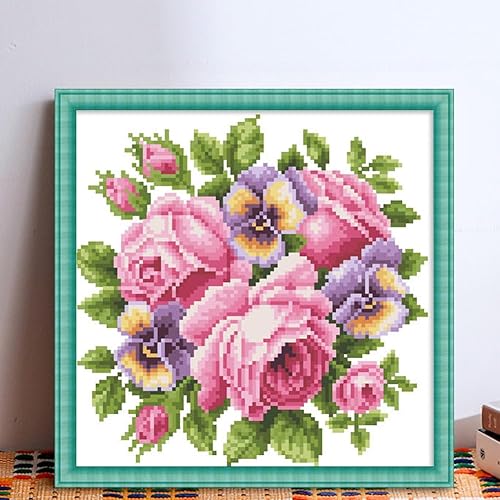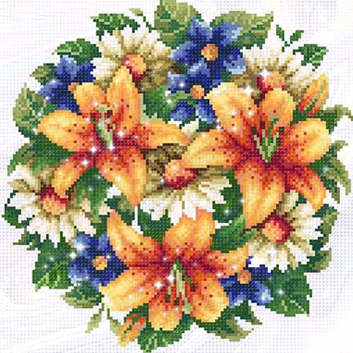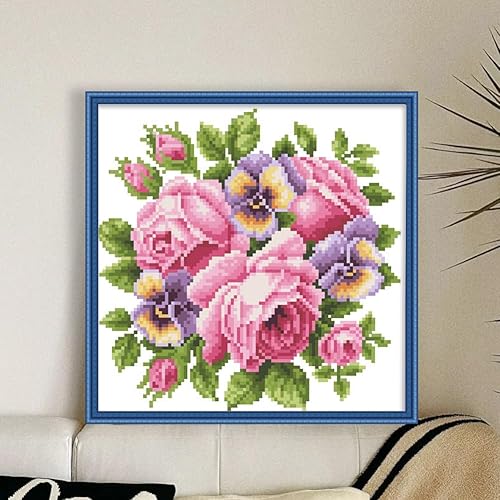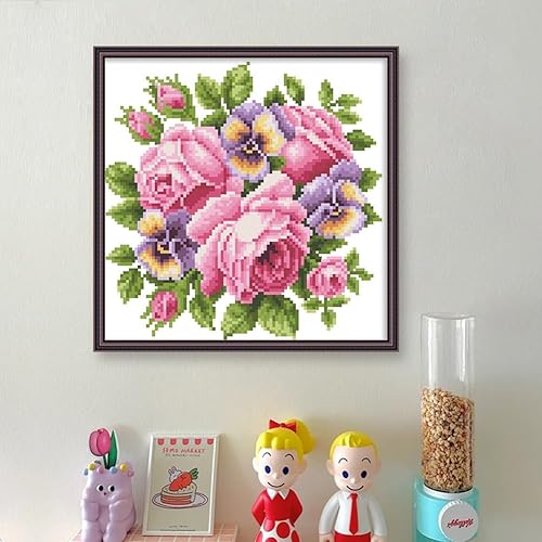 ARVALOLET Kit de broderie au point de croix, toile imprimée avec perles, peinture 9 ct motif floral, pour artisanat et décoration
