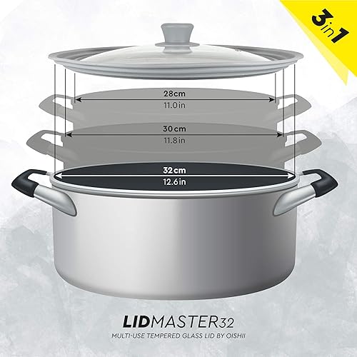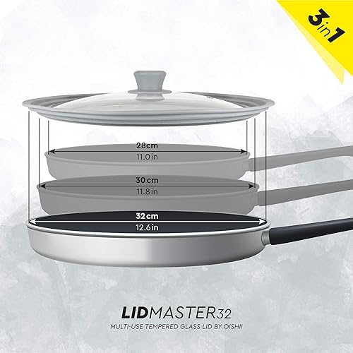 O-ishii Lidmaster - Couvercle Universel en Verre pour Poêles et Casseroles Ø 24, 26 et 28 cm