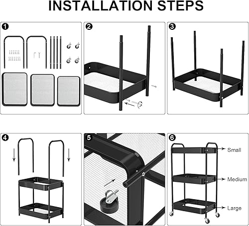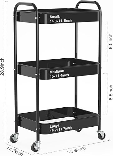 PNVXNUS Chariot de rangement à roulettes en métal à 3 niveaux avec roulettes, organiseur multifonction pour bureau, cuisine, salle de bain, livres, couches – Assemblage facile (noir)