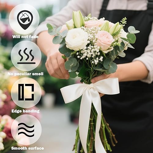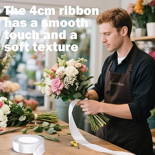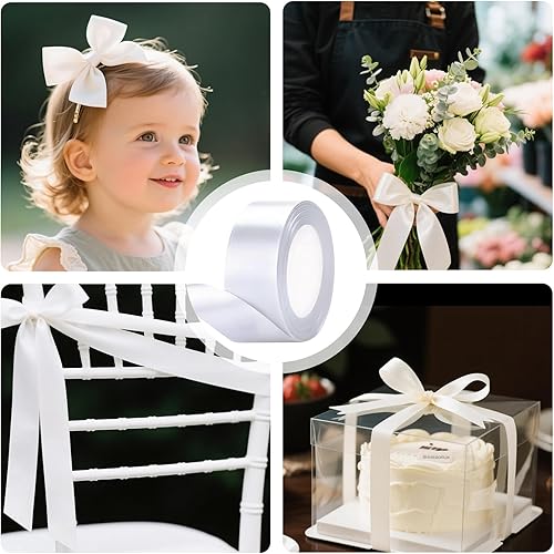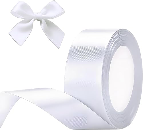 Ruban de satin blanc - 40 mm de long - 22 m de long - Ruban pour cheveux - Ruban cadeau blanc - Fabriqué à la main - Convient pour la décoration de communion, mariage, anniversaire, baptême, Pâques