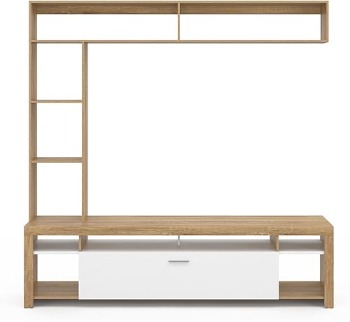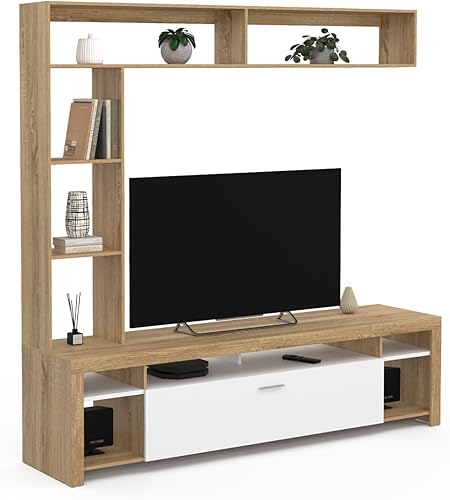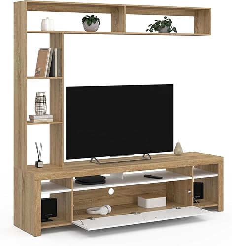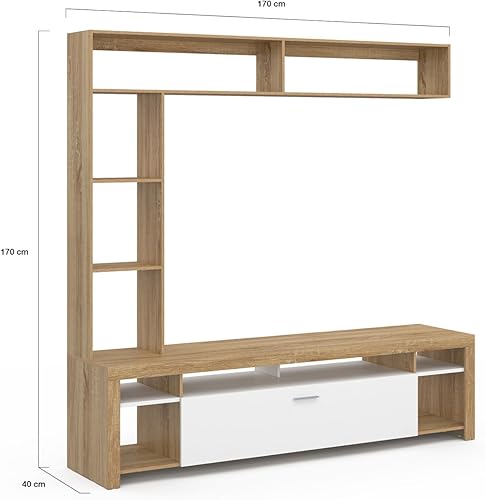 IDMarket - Ensemble Meuble TV et étagères 170 cm Malo Bois et Placard Blanc
