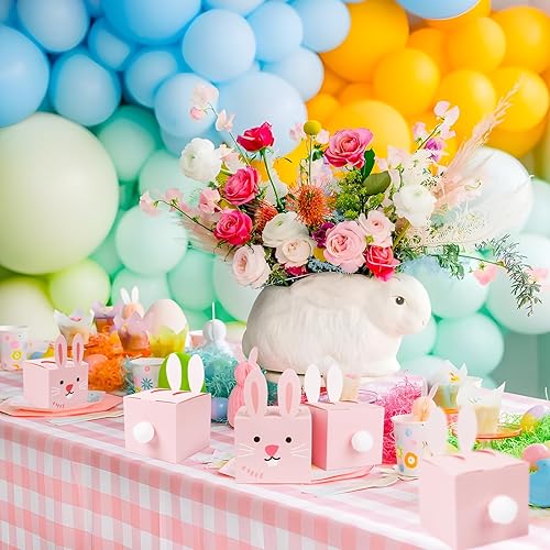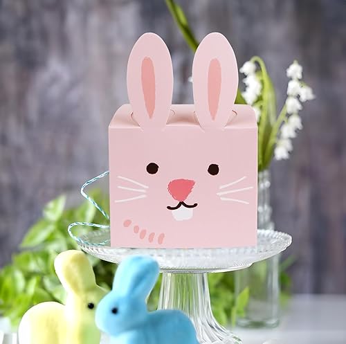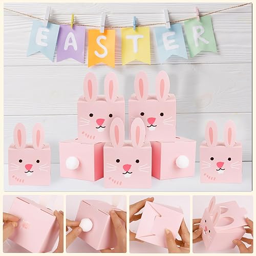12Pcs Boîte Bonbon Pâques Sachet Cadeaux Motif Lapin avec Queue Ballotin en Carton pour Fête Enfant Garçon Fille