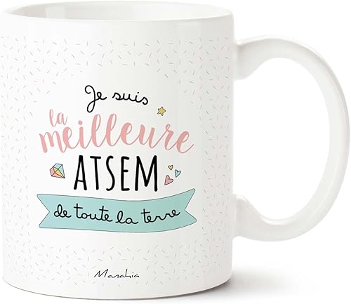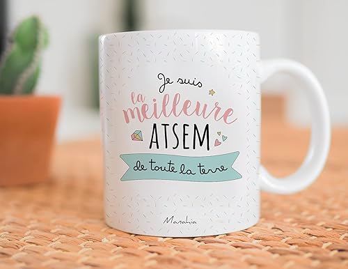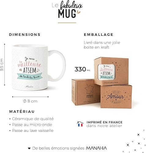 Manahia Mug Cadeau ATSEM - Je suis la meilleure Atsem de toute la Terre - Avec Boite Kraft - 330 mL Céramique - Tasse atsem personnalisée - Imprimé en France - Fin d'Année Scolaire - Tasse Merci