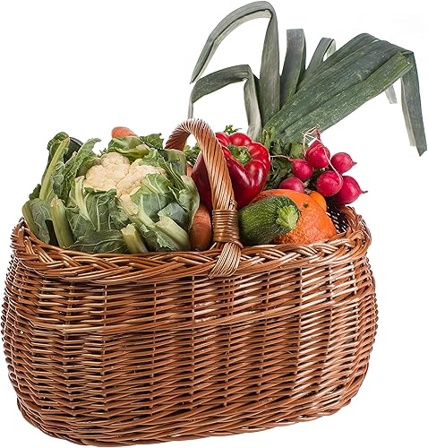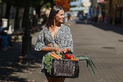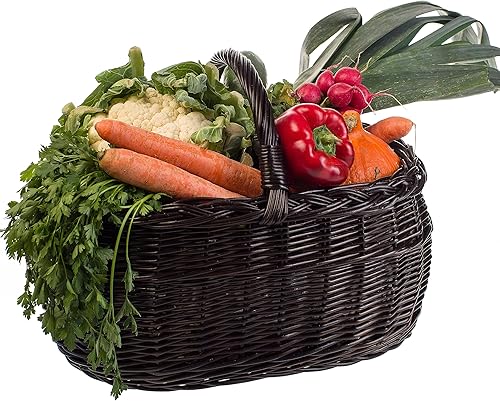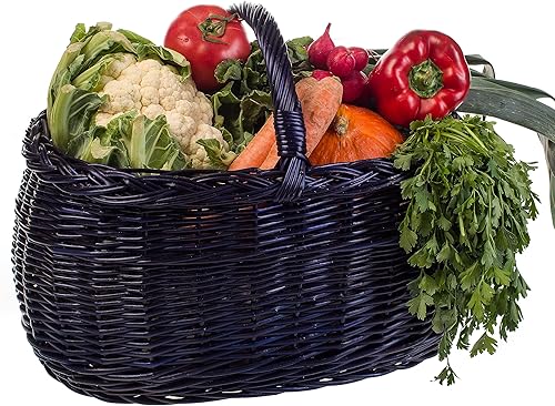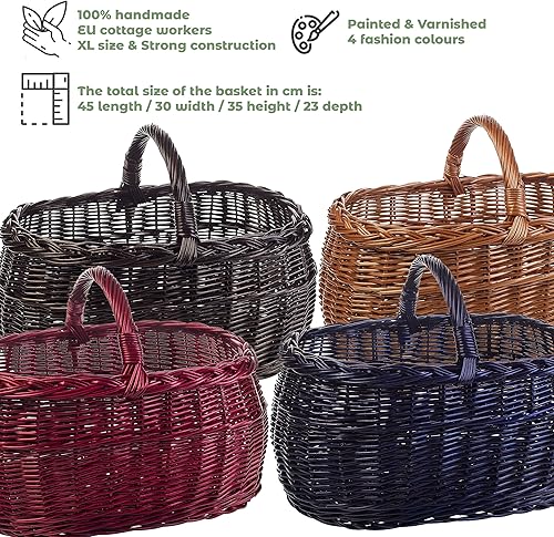 Panier à anses en osier pour courses, couleur naturelle ou laqué en 3 couleurs différentes, spacieux et confortable, panier cadeau, 45 x 30 x 35 cm