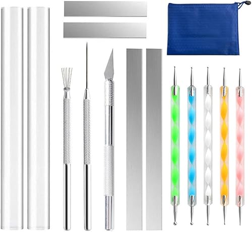 Iegefirm 14 outils d'argile polymère, rouleau acrylique, rouleau à pâtisserie en argile, lame en tissu, sculpture, kit de fabrication de boucles d'oreilles, pièces de rechange de , accessoires