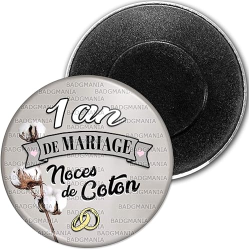 Badgmania Magnet Aimant 5.9cm | Anniversaire 1 an de Mariage Noces de Coton | Diamètre 5.9cm | Anneaux Mariage