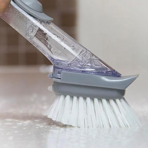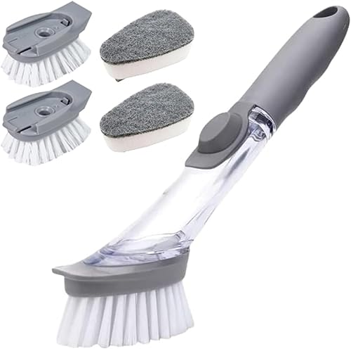 Yuqilin Ensemble de 5 Pièces Brosse Nettoyage, Brosse Vaisselle avec Reservoir, Gris Brosse Menage, Livré avec 4 Têtes de Brosse Interchangeables, pour Poêles, Couverts, Éviers, Murs