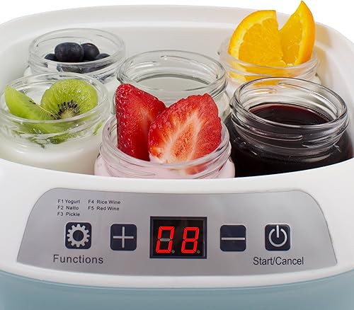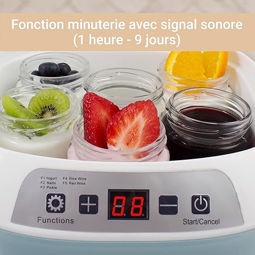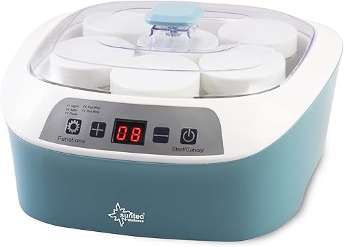 SUNTEC Yaourtière YOG-8588 digital [Pour des yaourts/du vin/des kimchi/du natto, etc. faits maison, 6 pots de 170 ml, fermentation lente à 25-45°C, minuterie, max. 20 W]