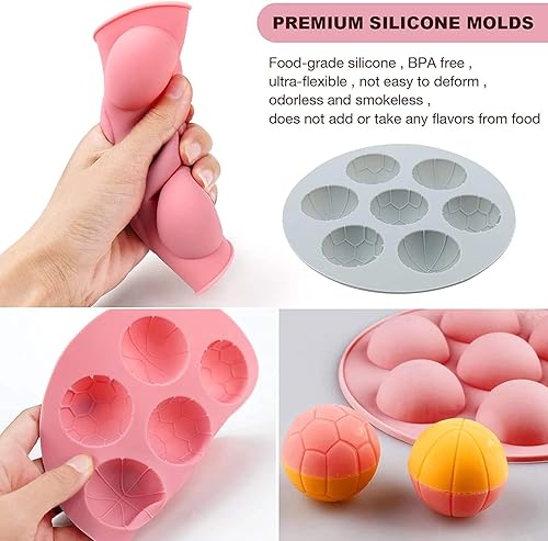Selecto Bake Mini Moule en silicone semi-sphère à 7 cavités en forme de football et de basket-ball, moule de cuisson pour faire du chocolat, des gâteaux, de la gelée, de la mousse en dôme