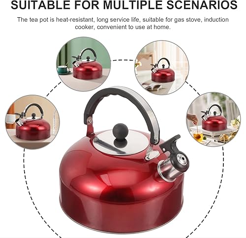 Cabilock Bouilloire À Thé Sifflante 4L Cuisinière Théières En Acier Inoxydable Théière Sifflante Bouilloire Rouge Théière Sifflante Bouilloire D'eau Bouillante Pot D'eau Pour L'eau