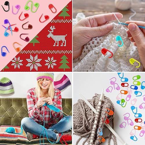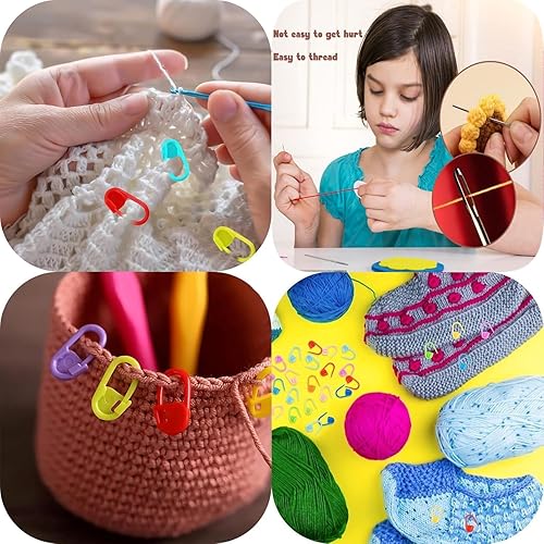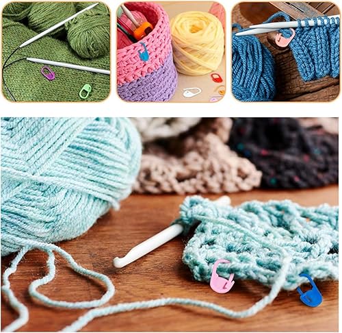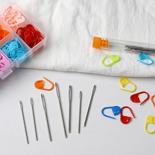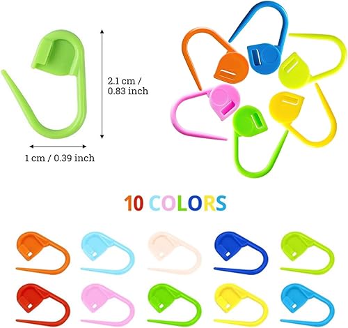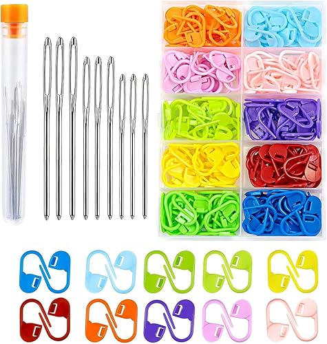 FLZONHUT 120 Pièces Marqueur Tricot,10 Couleurs Marqueur Crochet avec 9 Aiguilles à Coudre à Gros Chas,Marqueurs de Mailles Pinces de Verrouillage en Plastique pour Couture,Tricot,Bricolage,Artisanat