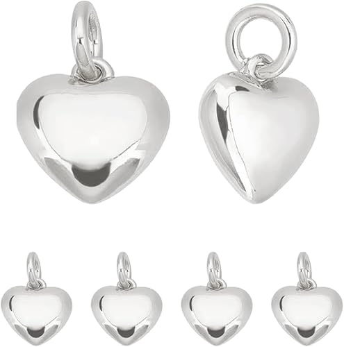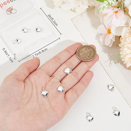 Beebeecraft 925 breloque en Forme de Petit Cœur en Laiton Plaqué Argent Sterling 3D en Forme D'Amour pour la Fabrication de Bijoux de Collier et de Bracelet (10x10x3.5mm)