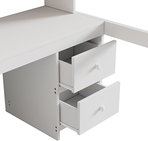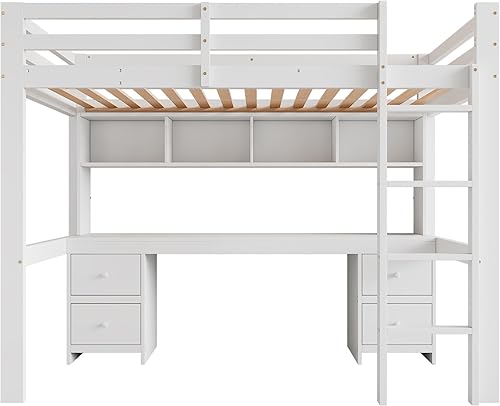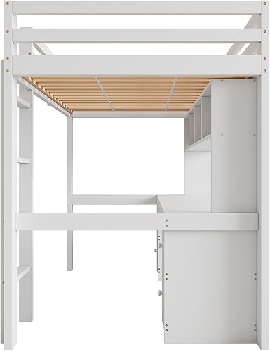 fortuna Lai Lit mezzanine, 90 x 200 cm, avec bureau et espace de rangement, sommier à lattes, cadre de lit, pour garçons et filles, blanc