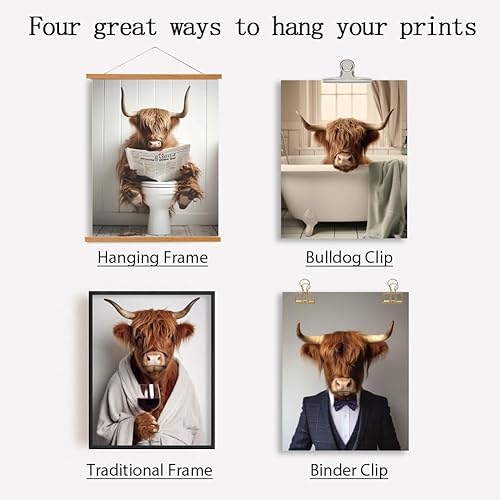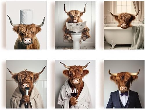 SUPERDANT 6PCS Affiche Decoration Murale Humoristique en Forme de Vache des Highlands Affiche Murale pour Salle de Bain Toilettes Chambre à Coucher Tableaux, Posters et Arts Décoratifs