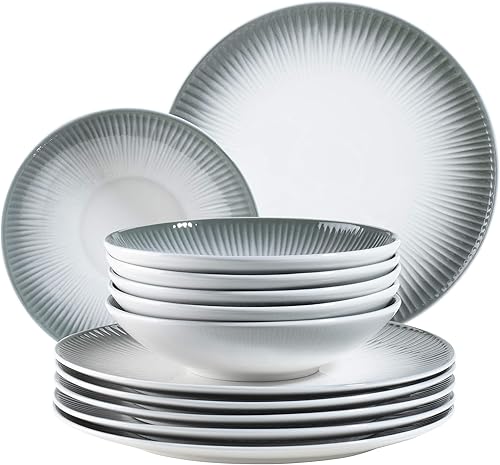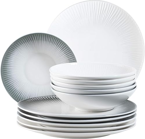 MÄSER 931461 Dalia Service de table pour 6 personnes en porcelaine hôtelière de qualité supérieure en blanc 12 assiettes au design vintage, porcelaine durable
