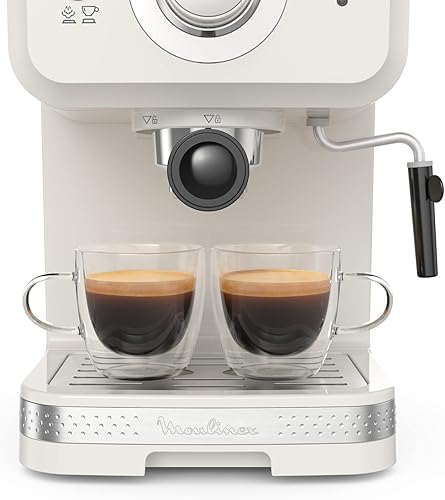 Moulinex Soleil Cafetière expresso à pompe, Réglages manuels, Pression pompe 15 bars, Buse mousseur à lait, Accessoires, Réservoir d'eau amovible 1,5 L, Porte-filtres simple et double XP330A10