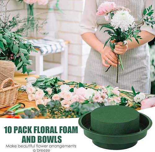 tongfeng 10 Mousse Florale Ronde avec Bol, Fleur Oasis Ronde Humide, Mousse Florale Humide pour Fleurs Décoration, Fleurs D'allée De Mariage, pour Mariage Fleurs Décoration