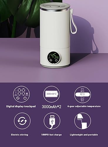 Bouilloire électrique de voyage, sans fil, 6000 mAh, rechargeable, portable, mini bouilloire de camping 400 ml, électrique en acier inoxydable, 4 vitesses, bouilloire de voyage