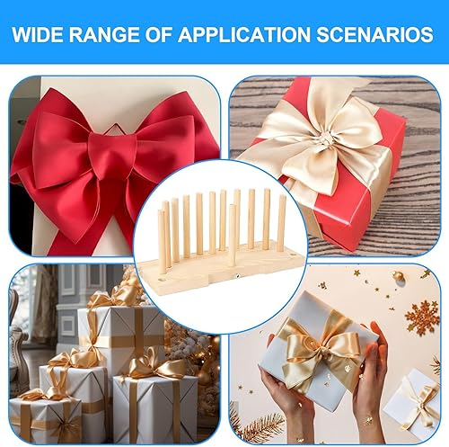 Qeepucak Machine à Ruban en Bois avec 12 tiges de positionnement, Machine à nœuds Double Face, Fournitures de Fabrication de nœuds pour Ruban, Couronne, Ornements, Emballage Cadeau