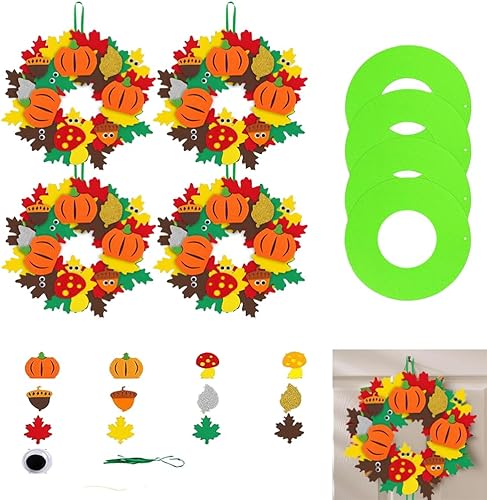 Sprießen 4 Pièces Kit d'Artisanat De Couronne d'Automne, Kit d'Artisanat d'Automne Pour Enfants,Kit d'Artisanat d'Automne Créatif, Pour l'Automne, Thanksgiving, Halloween, Noël
