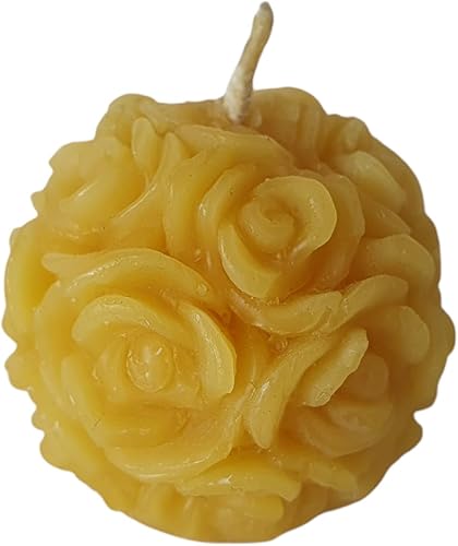 Bougie en cire d'abeille - Boule de rose - 3,5 cm - 100 % cire d'abeille pure
